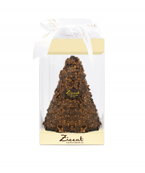 Albero di Natale di Cioccolato Fondente, Latte o Bianco con granella di nocciola o pistacchio, in confezione regalo