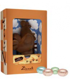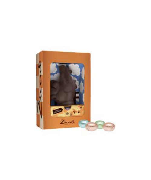 Una confezione coloratissima con all'interno una gallinella di cioccolato e i suoi ovetti di vari gusti!